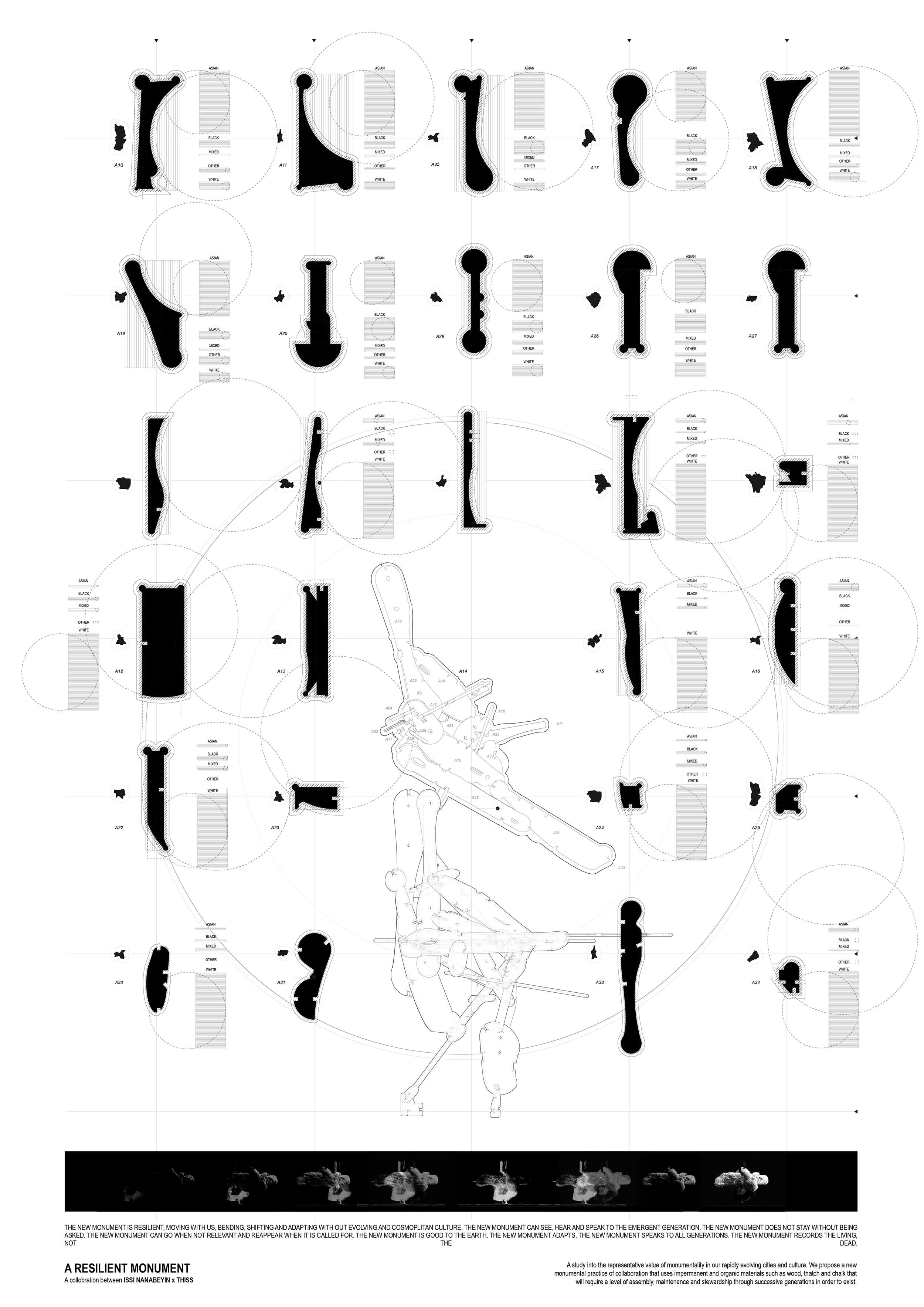 Resilience has been previously understood as individual permanence and dominance, but modern times are showing us that a monument can be collectively pulled down, or thrown into a river, covered up or simply rejected. This project attempts to re-define resilience as impermanent, incremental, organic and optimistic. The traditional materiality of monuments is challenged by the use of impermanent and organic materials such as wood, thatch or chalk, with collaboration required for the monument’s existence; assembly, maintenance and stewardship through successive generations.