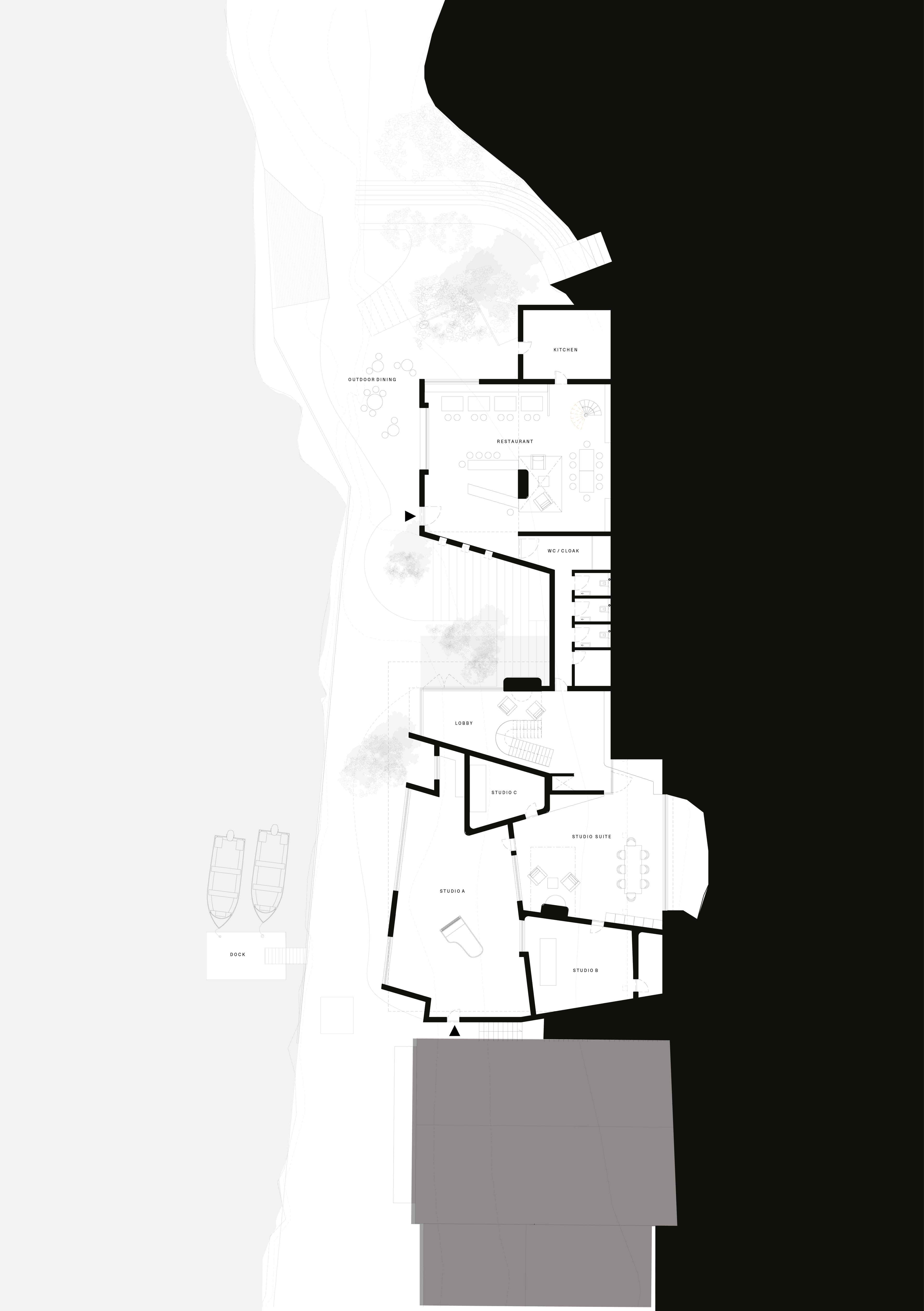 Located on a sensitive and highly protected fjord outside Oslo, this project operates as both a boutique hotel and a dedicated retreat for musical writing and recording with a connection to the landscape. The brief demanded a careful negotiation: satisfying stringent planning scrutiny that called for a context driven architectural response, while seamlessly integrating demanding acoustic facilities and refined, tactile spaces.