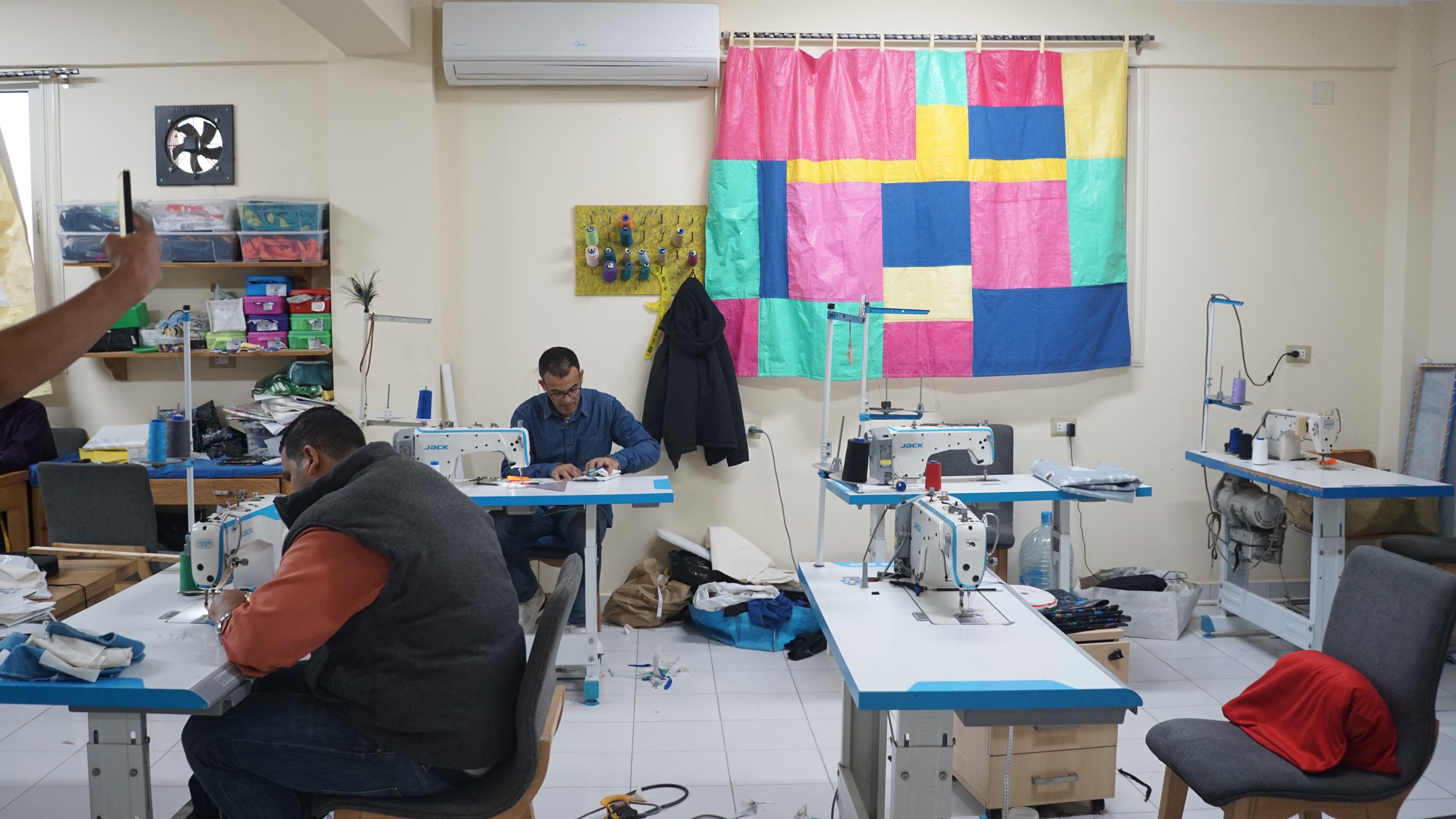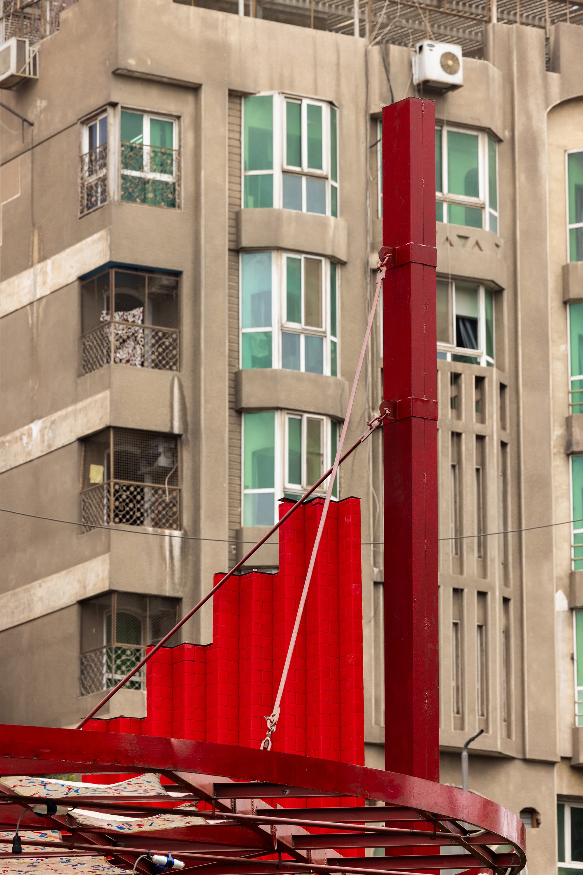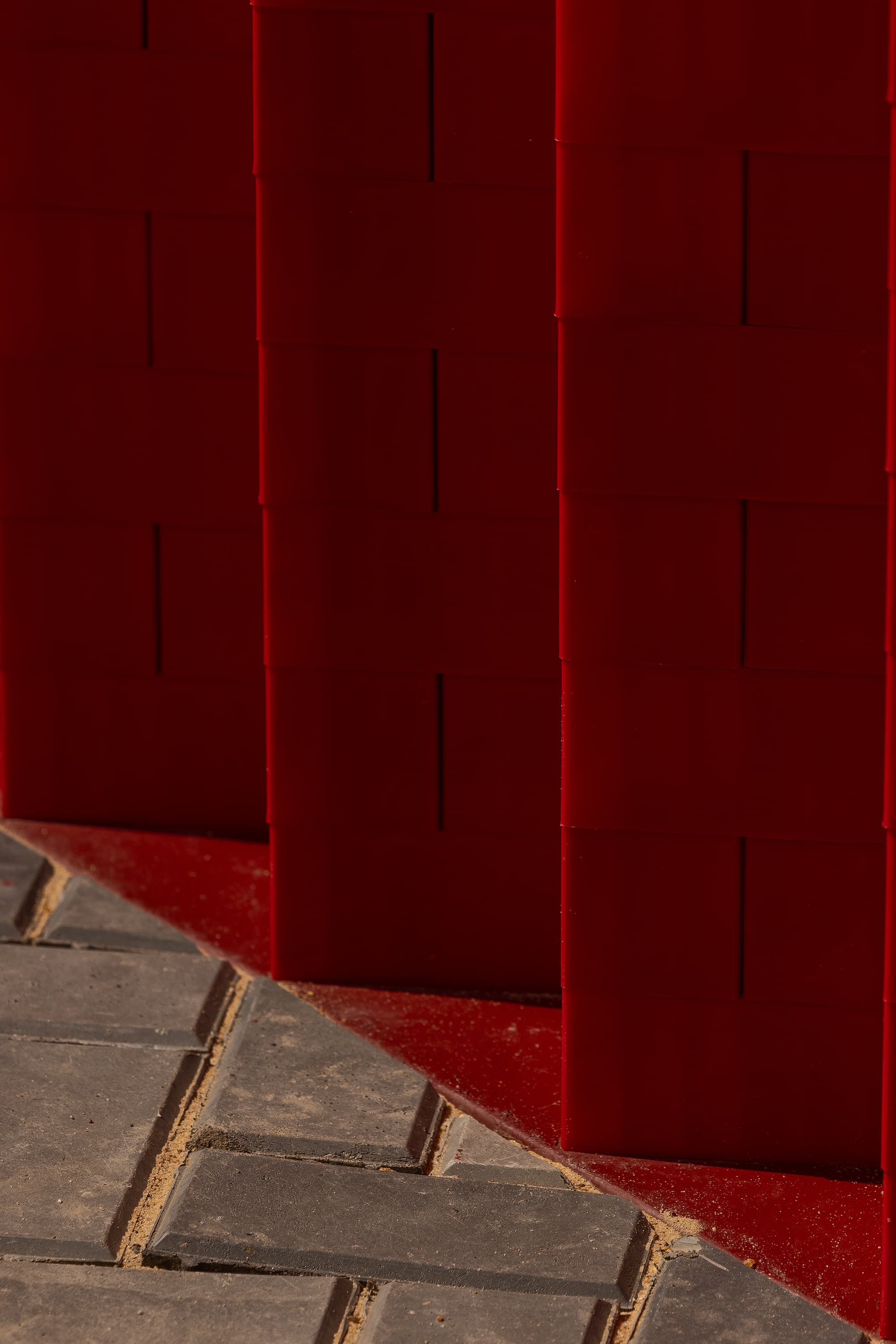 Material experimentation was central to the project. We developed the architectural language around recycled waste plastic, using it to produce floor tiles, shading devices and striking red wall elements that define the identity of the space. By turning discarded material into a robust and expressive building system, the project demonstrates how circular construction methods can shape a new architectural language for Cairo: one that is resourceful, low-carbon and rooted in local conditions.