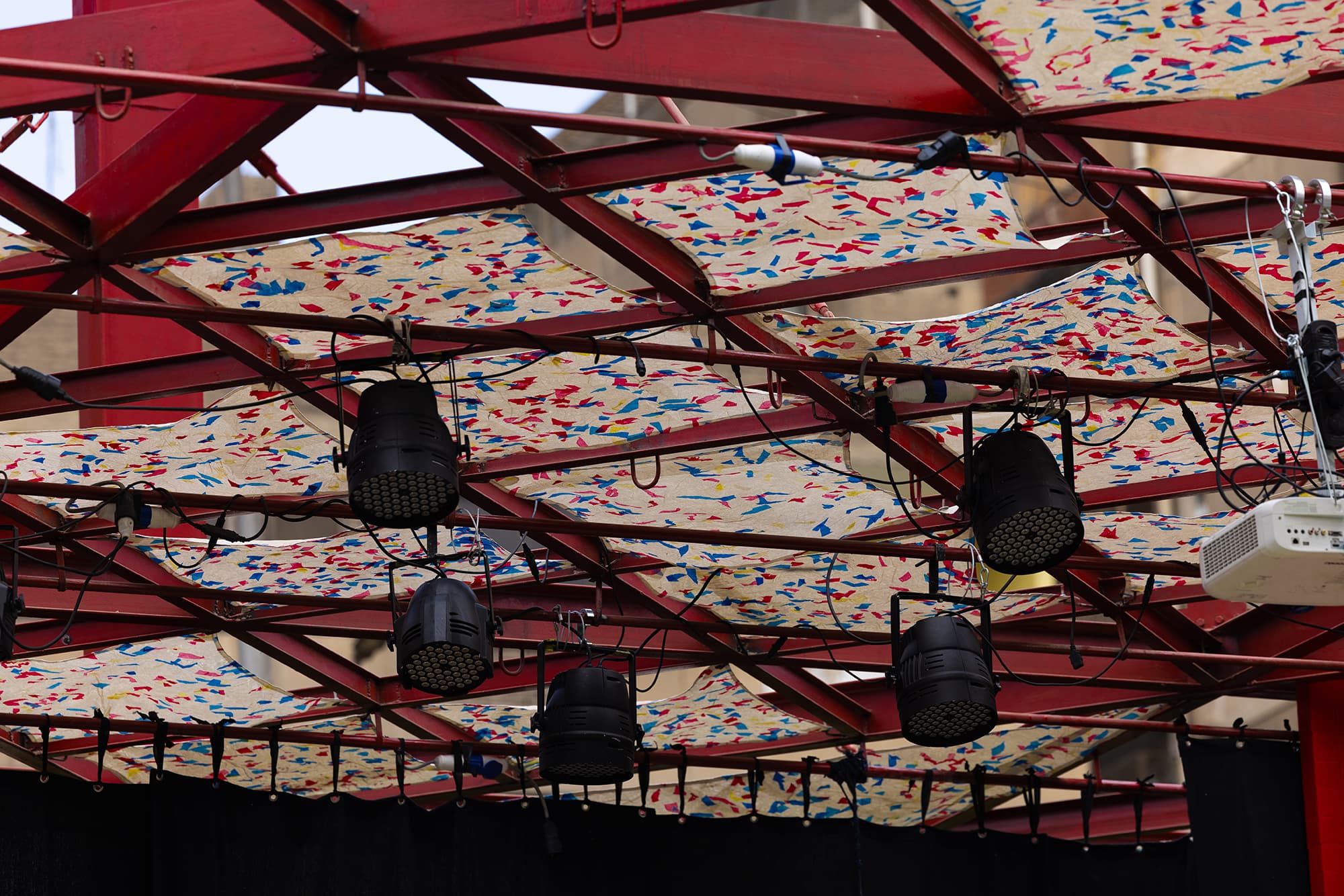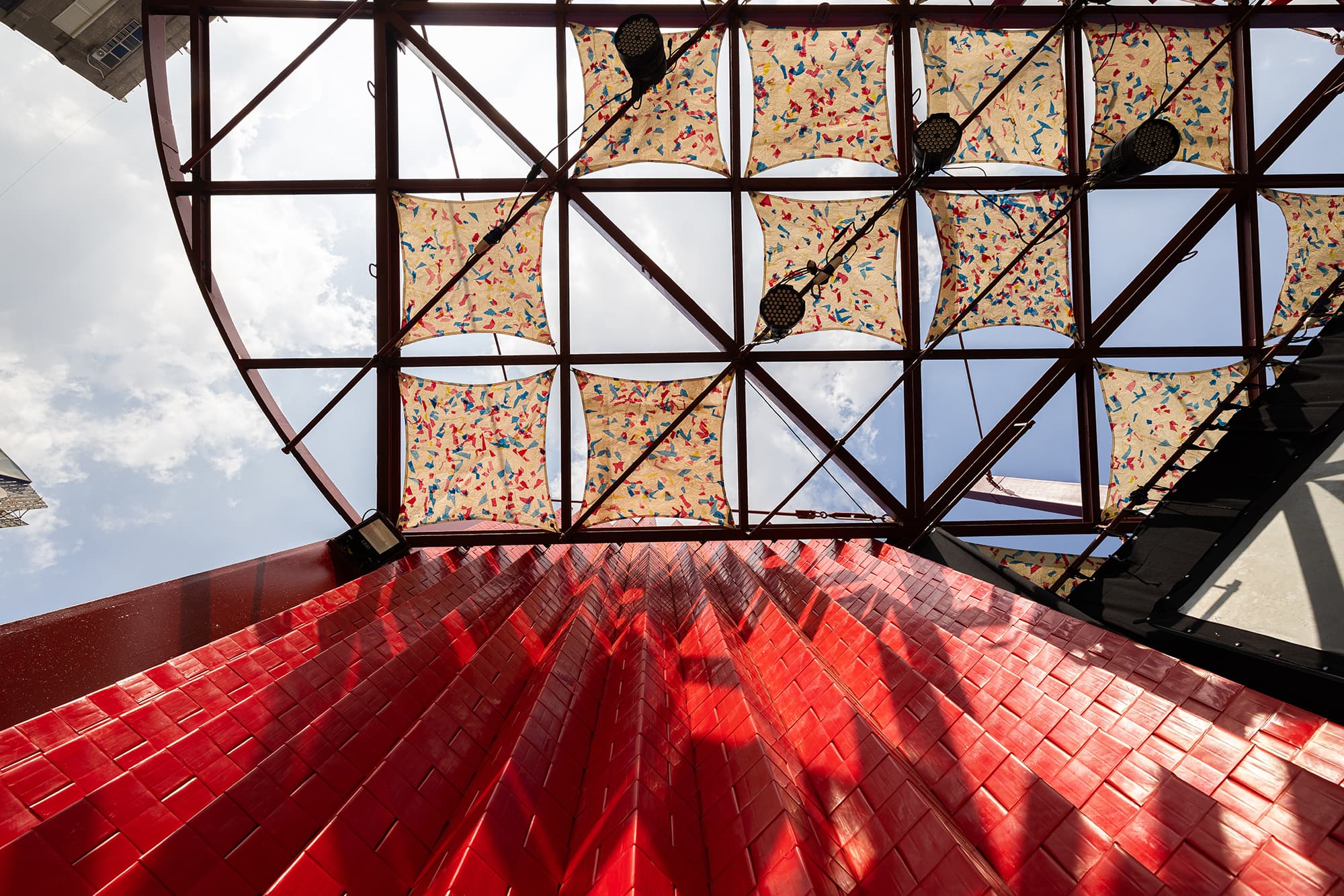 Conceived as a direct architectural response to its context, Pergola stands in deliberate visual opposition to the billboards and infrastructure that dominate the surrounding bridge. Its vivid red form asserts a strong civic presence within an increasingly privatised urban landscape, reclaiming attention for culture, dialogue and collective use. We designed the structure not simply as a venue, but as an urban marker: a space that draws people in, frames collective activity, and gives new visibility to the public realm.