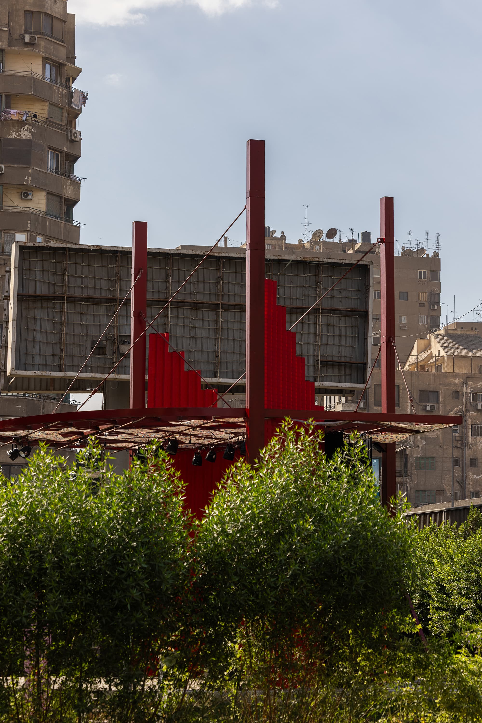 Set beside the off-ramp of Cairo’s 6th of October Bridge, Pergola is a ten-metre-tall outdoor theatre and community arts space in Giza. Developed by THISS Studio as a bold civic landmark, the project transforms a small urban park into a platform for performance, gathering and public life.